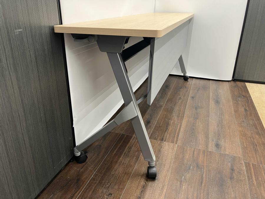 【W1500の折り畳みテーブルが入荷!】◆オカムラ/フラプター ナチュラル 木目 サイドスタックテーブル 収納 中古 博多 天神 九州最大級 オフィスバスターズ