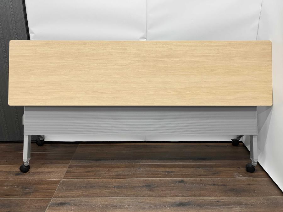 【W1500の折り畳みテーブルが入荷!】◆オカムラ/フラプター ナチュラル 木目 サイドスタックテーブル 収納 中古 博多 天神 九州最大級 オフィスバスターズ