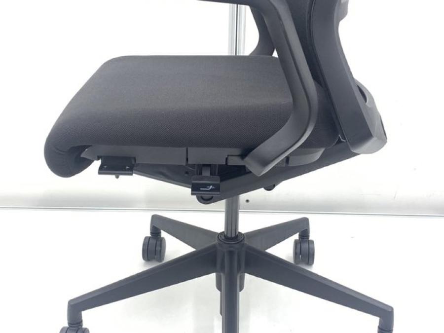 もちろん見た目だけでなく、オフィスでの使いやすさも考えられています。例えば、普通のチェアでは離着席時に背もたれを持つので、背もたれの上部が少しずつ汚れてきます。しかし、エルフィでは、背もたれのフレームに取っ手がついており、それを押し引きできるので、クッションやメッシュを汚すことなく綺麗な状態で長くお使いいただくことができます!