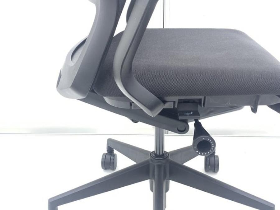 また、個人的にオススメなのは『フルアジャスタブル肘』というアーム部分が斜め前に伸びていくタイプの肘置きを搭載したモデルです。高さを上げれば上げるほどパッドが前方に迫り出していくので、デスクワークの際にちょうど肘を置きたい場所に肘置きがきます。これがとても快適なので、ぜひ一度お試しいただきたいです!*エルフィチェアの肘パーツはフルアジャスタブル肘の他に、固定肘、アジャスタブル肘などがあります。