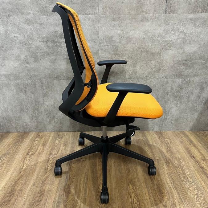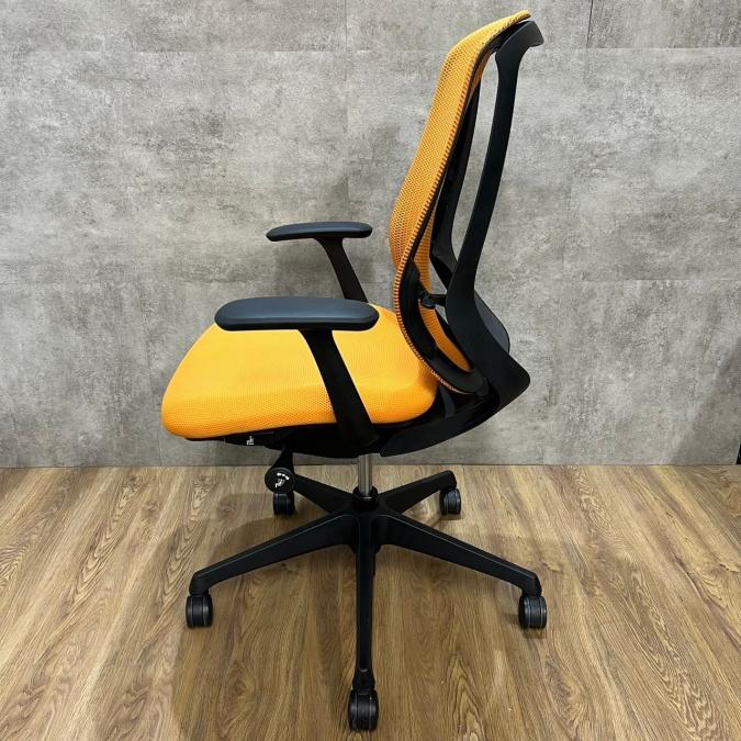 【在庫入替セール品!】【背のカーブを変えられる新感覚のオフィスシーティング!】■オカムラ シルフィーチェア 可動肘付 オレンジ ハンガー付 ホワイトフレーム ■新感覚のオフィスシーティング!【Okamrua Sylphy】