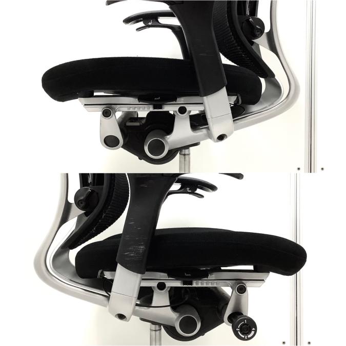 - 座面の前後スライド調整レバーで操作(前後50mm分調整で)できます。(グラデーションサポートメッシュタイプを除く)
