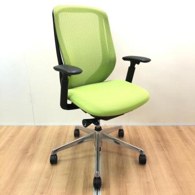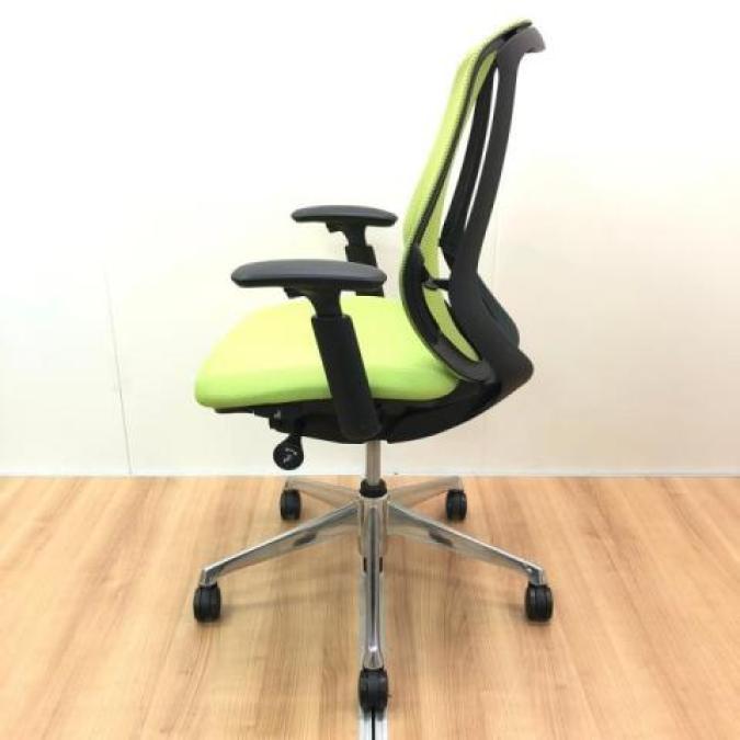 【大人気シルフィーチェア!木目デスクとも相性バッチリなライムグリーンのメッシュチェア!】■オカムラ製 シルフィ(Sylphy)肘付ハイバック アジャストアーム アームレスト付 ■グリーン×ブラックフレーム ■メッシュ- つくば店