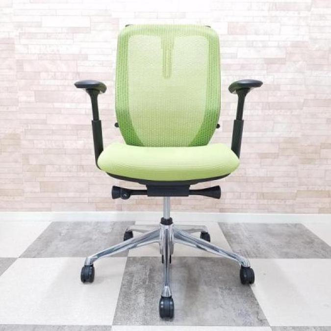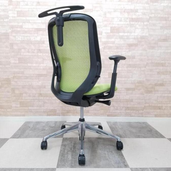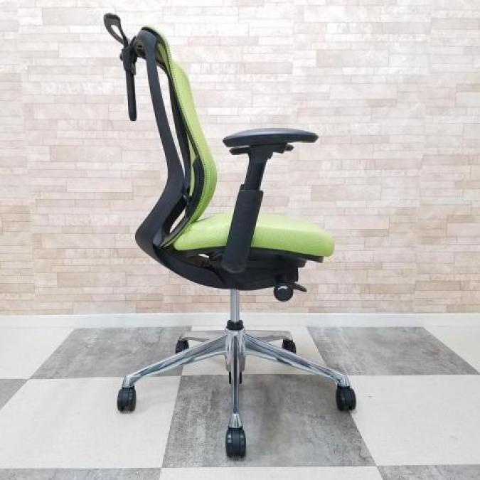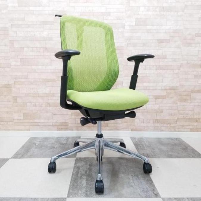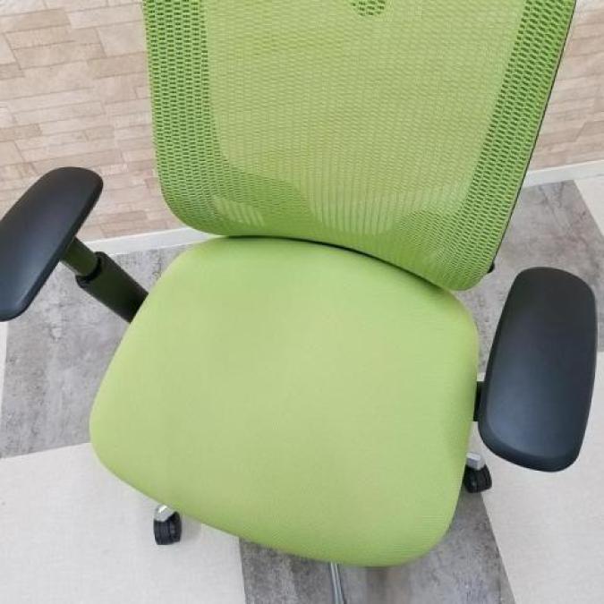 【大人気シルフィーチェア!木目デスクとも相性バッチリなライムグリーンのメッシュチェア!】■オカムラ製 シルフィ(Sylphy)肘付ハイバック アジャストアーム アームレスト付 ■グリーン×ブラックフレーム ■ハンガー付 ■メッシュ- つくば店