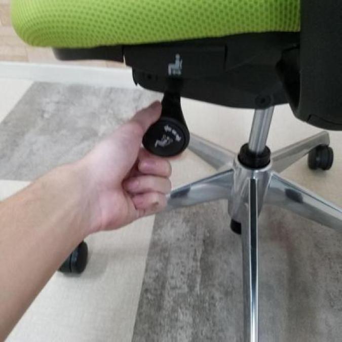 - 座面右下のダイヤル操作で、リクライニングの強弱調整が行えます。これまでのダイヤル式よりも、少ない回転数で、最弱?最強の調整が可能です。