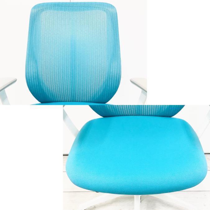 【訳アリ品】【三次元曲面が身体にフィット!前傾チルト機能付き大人気メッシュチェア!】■オカムラ(okamura)製 シルフィーチェア(Sylphy) 肘付きハイバック ■背面メッシュ ■可動肘 ■ブルー×ブラックシェル