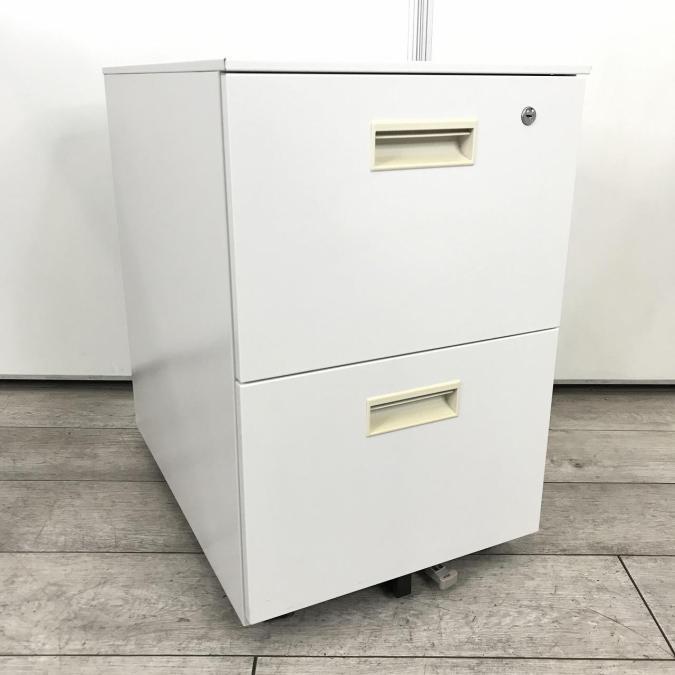 【平机・フリーアドレスデスクのお供に!使いやすさ抜群のキャスター付き2段ワゴン!】■江戸崎共栄製 2段ワゴン デスクインワゴン H610㎜ ■ホワイト ■シリンダー錠 【弊社使用欄:A00991653】【KY】- 在庫数