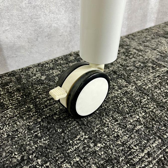 - 一部不具合あり天板歪み、アジャスター無し、キャスター使用不可ようなそのテーブルの本来の効用を果たすための機能以外の一部が使用不可な状態。(例、キャスターロッ ク機能使用不可、棚板無し等がある。)