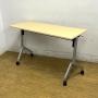 【会議・研修室などに・使わないときは畳んで省スペース!】■コクヨ(KOKUYO)製 リーフライン(Leafline)シリーズ サイドスタックテーブル フラップテーブル W1800×D600㎜ ■木目ナチュラル天板 ■幕板付き 【2~3名での使用に最適】
