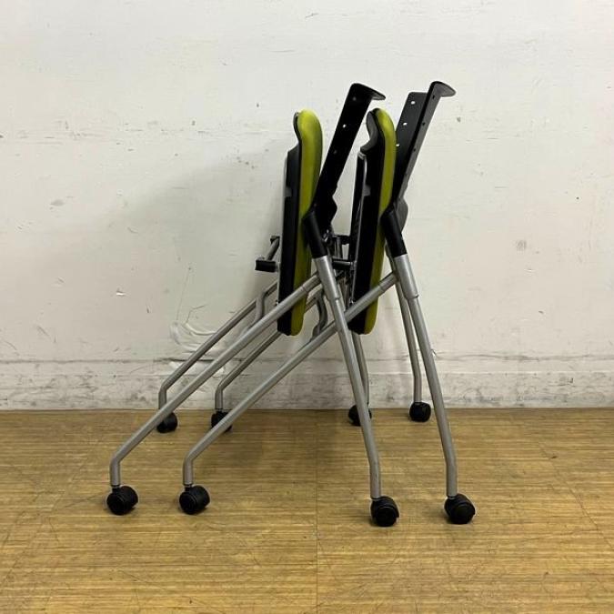 【スタイリッシュで快適な座り心地!】イトーキ製 マノスチェア ネスティング ミーティング 会議 来客 モスグリーン 収納 福岡 九州最大級《オフィスバスターズ福岡博多店は、福岡を拠点として、日本全国へ中古オフィス用品・オフィス家具を提供しております》