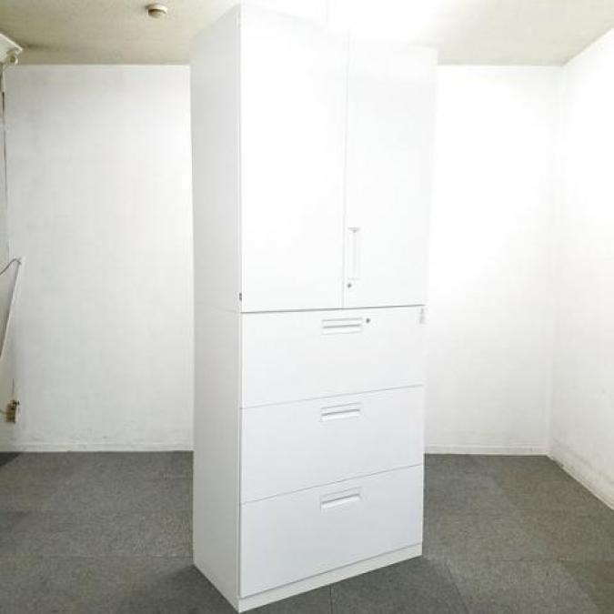 【収納量抜群の書庫セット!観音開き+引き出しタイプの人気の組み合わせ!】■コクヨ(KOKUYO)製 エディアシリーズ(EDIA) 両開き+3段ラテラル 書庫セット ハイキャビネット ■シリンダー錠 ■ホワイト