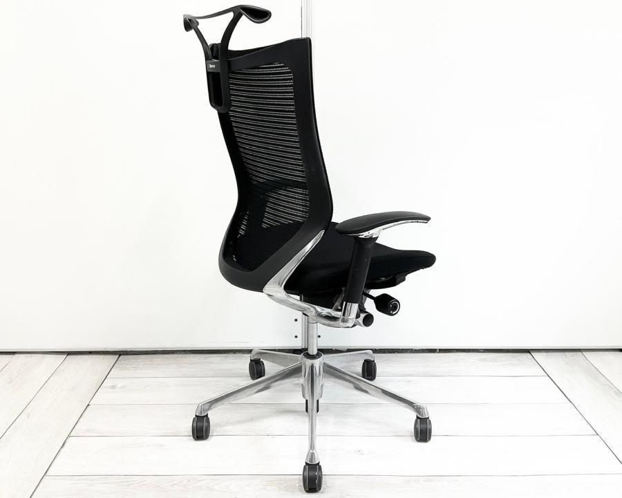 【オフィスの執務室、会議室におすすめ!】■オカムラ(okamura)製 バロン(Baron)チェア 肘付き ハイバック ■背・座面メッシュ ■可動肘 ■ヘッドレスト付き ■ブラック【硬めの座面が大人気!国産メッシュチェアの代表格!】
