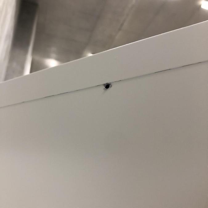 - 目立つ箇所複数あり深い傷・凹みが商品全体にある。(例、天板、正面、背部、サイド部分にある。)