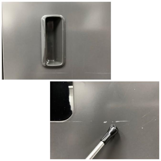 - 目立つ箇所あり傷・凹みが多数、深い傷・凹みが一部ある。(例、天板、正面、背部、サイド部分にある。)