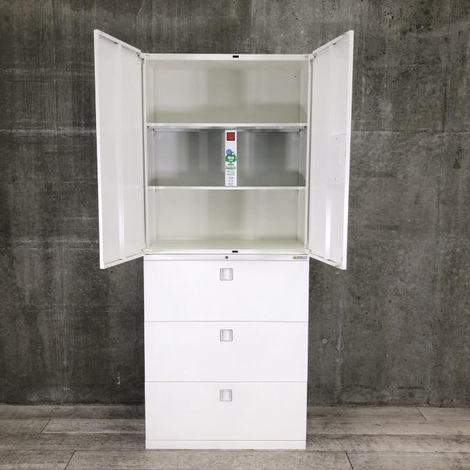 【中古】 レクトライン オカムラ/okamura ハイキャビネット/両開き+3段ラテラル 496853