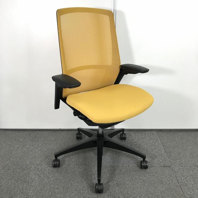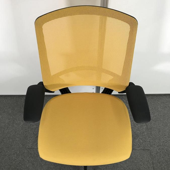【オカムラ製の高級モデル!美しいデザインと透過性の高いメッシュ仕様でワンランク上の環境に!】■オカムラ フィノラチェア (Finora) 肘付ハイバック 背面メッシュ ■可動肘 ■イエロー- 在庫数