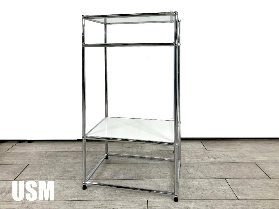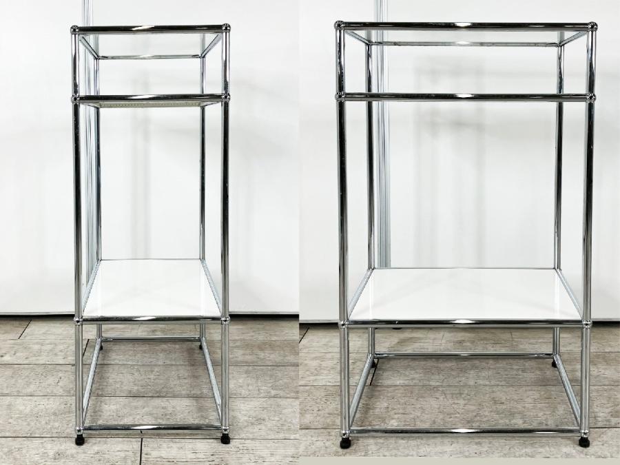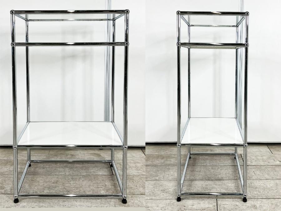 USMハラー 1連3段 電話台/花台 ガラスXピュアホワイト OPOPOP- デザイナーズ家具センター