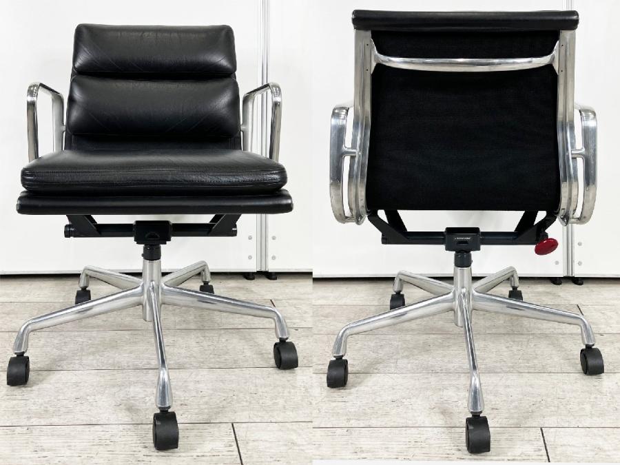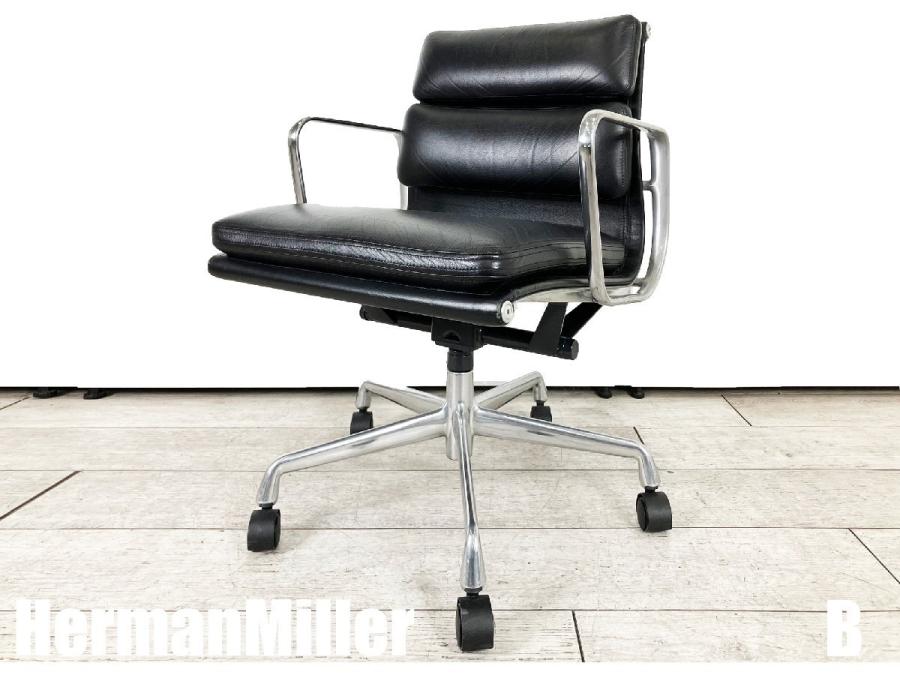 B)HermanMiller/ハーマンミラー イームズ ソフトパッド マネジメントチェア 黒 本革- デザイナーズ家具センター