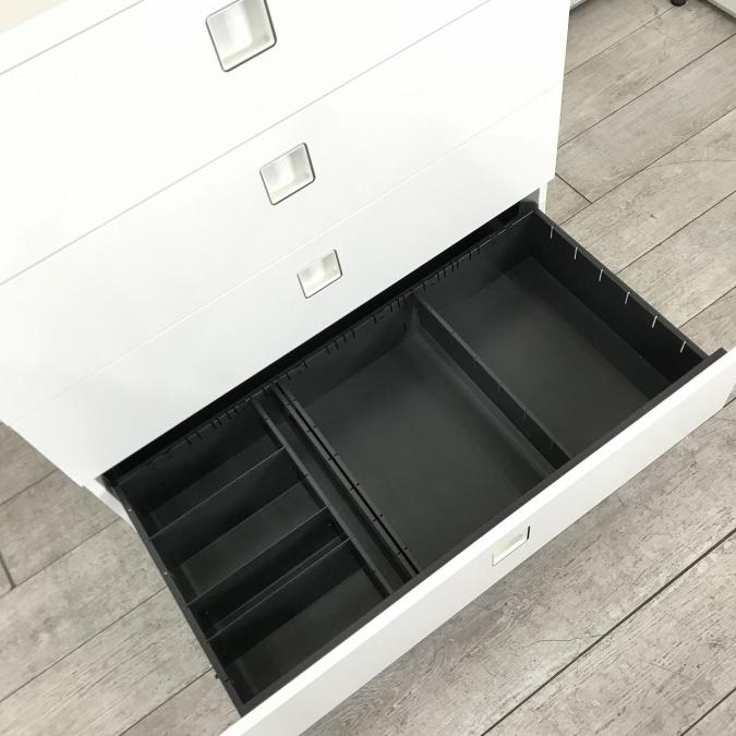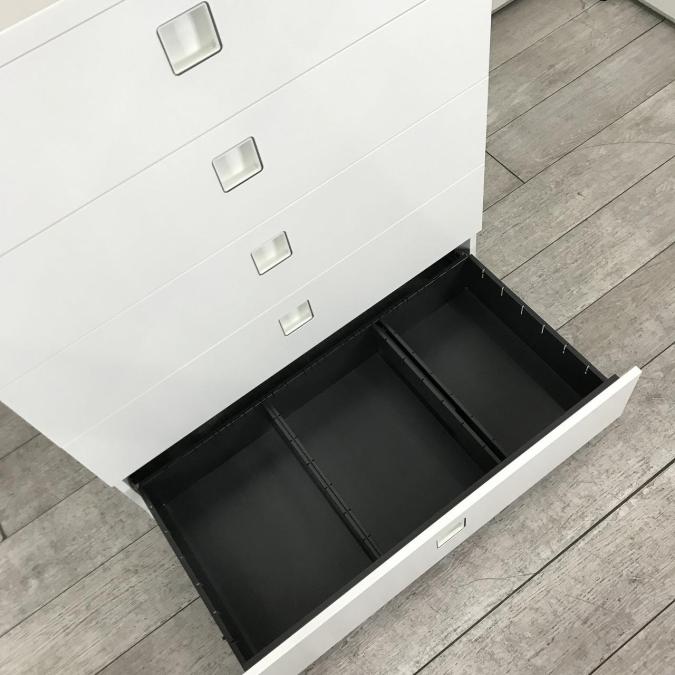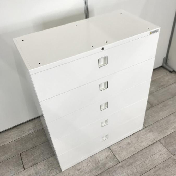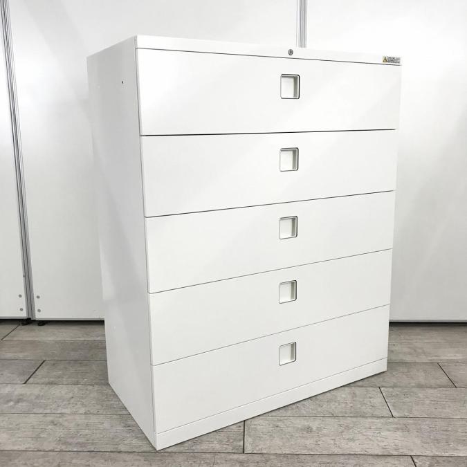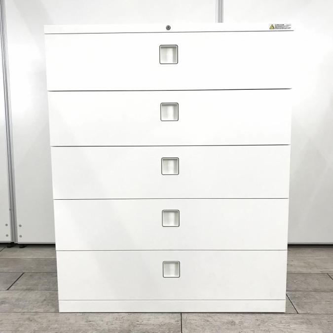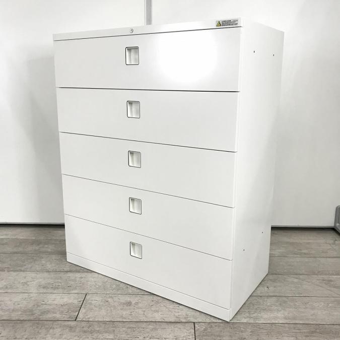 【在庫入替】【希少在庫入荷!人気シリーズの5段ラテラル書庫!収納量抜群の引き出し型キャビネット! 】■オカムラ(okamura) レクトラインシリーズ 5段ラテラル ローキャビネット ■シリンダー錠 ■ホワイト- 新大阪店