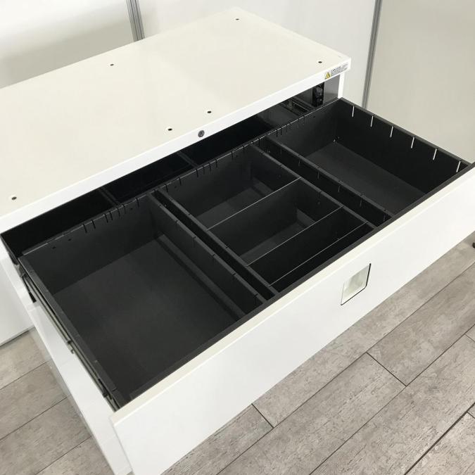 ☆人気のセパレートロックタイプ!【個人用ロッカーとしてもオススメ!】■オカムラ レクトラインシリーズ 3段ラテラル書庫 ホワイト天板付 各段施錠タイプ ■Okamura Rectline】