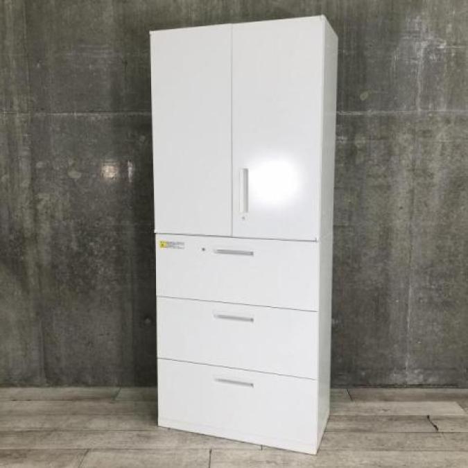 定番シリーズ!収納量抜群!観音開き+引き出しタイプのキャビネットセット! ■内田洋行/HS/ホワイト