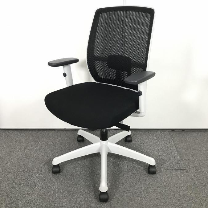【コスパの良い高機能メッシュチェア!】■プラス(PLUS) ビージェイ(BJ)シリーズ 肘付ハイバック ■背面メッシュ ■可動肘 ランバー付き ■ブラック ×ホワイトフレーム【ゆったり座れて心地よい!】【AD】- 在庫数