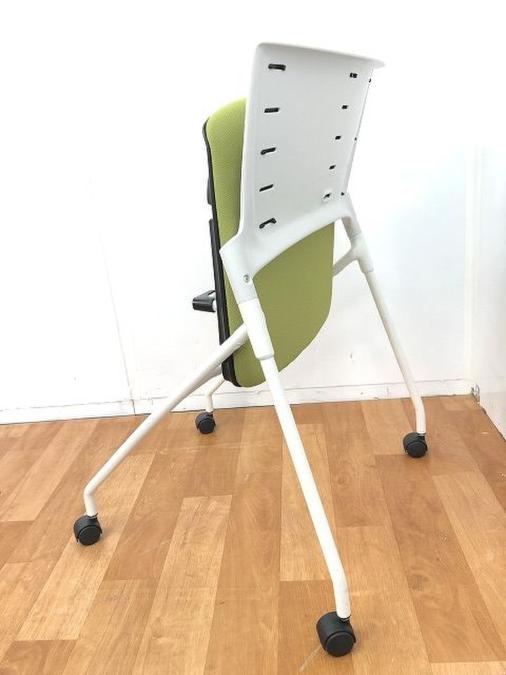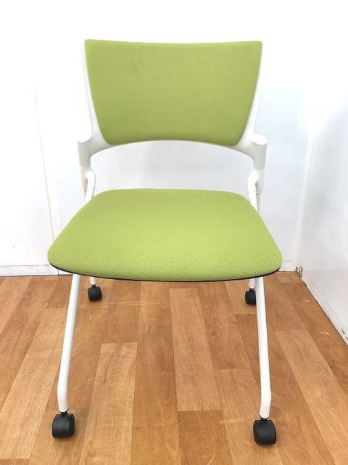 【重ねて収納!使い勝手抜群のネスティングチェア!】■イトーキ (ITOKI) マノス (MANOSS) チェア ネスティングチェア ミーティングチェア 肘付き 背パッドなし ■背:ホワイト/座グリーン ■キャスター付 ■固定肘 ■背面樹脂メッシュ