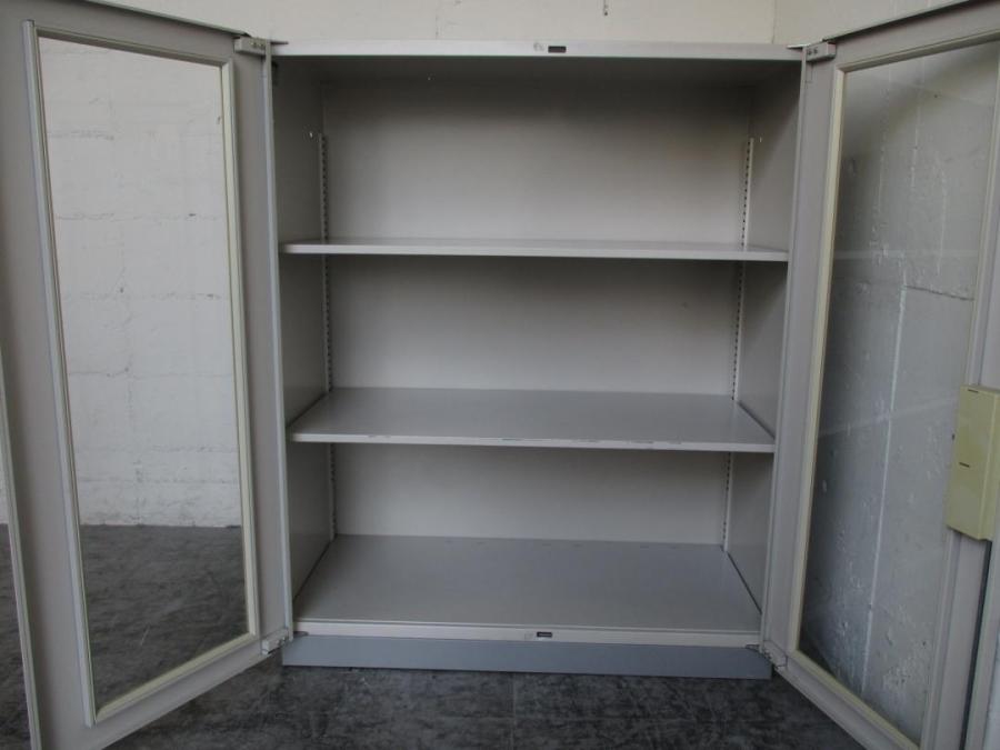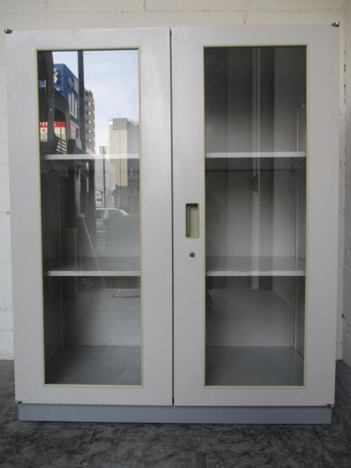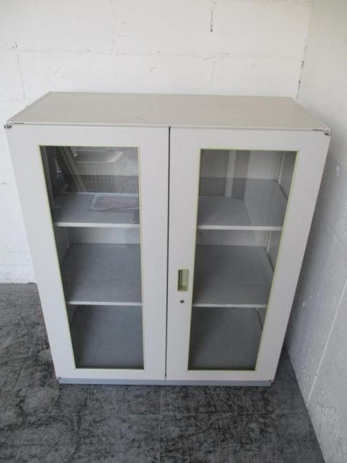 入荷の少ないガラス戸タイプの両開き書庫となります!
