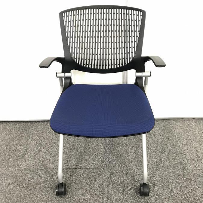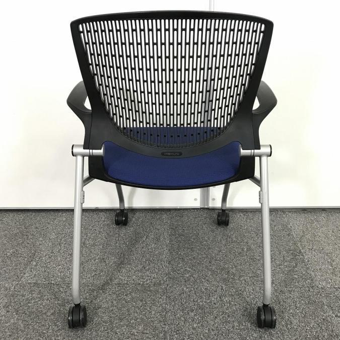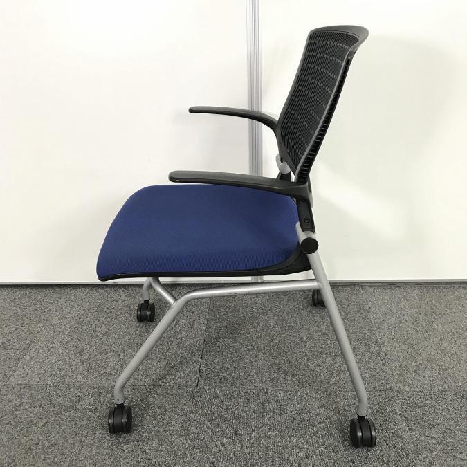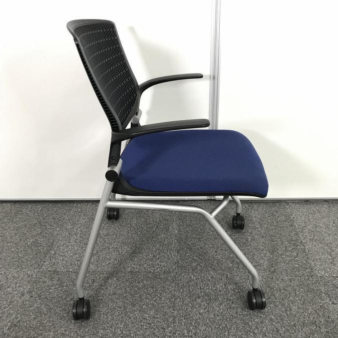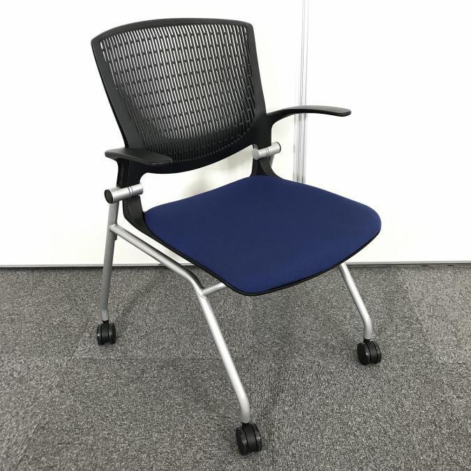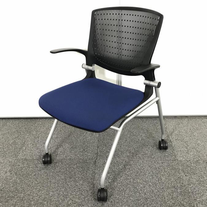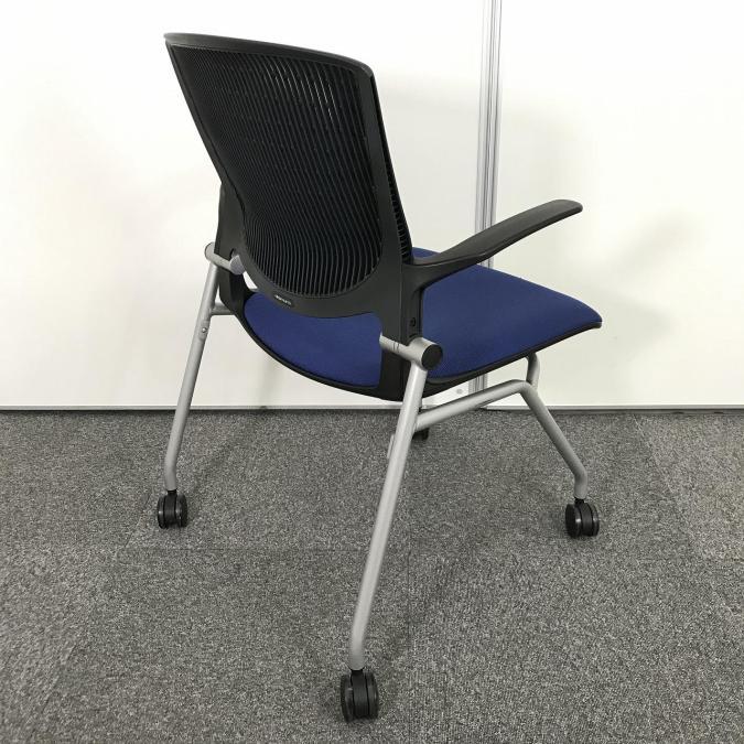 小肘付ネスティングチェア/背面クッション付き/ネイビー/オカムラ製/福岡/天神/博多/中古/安い
