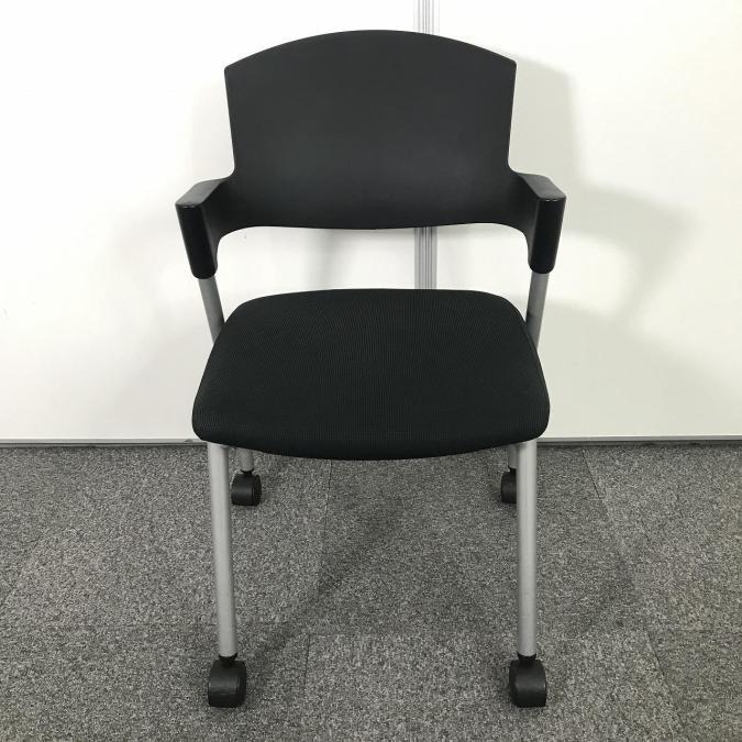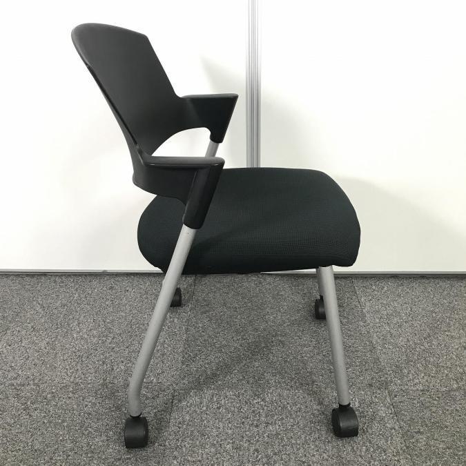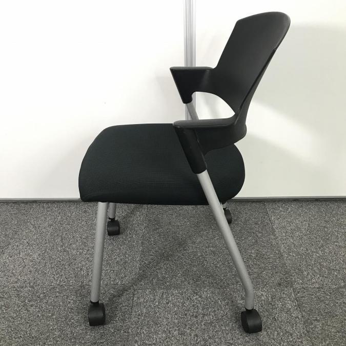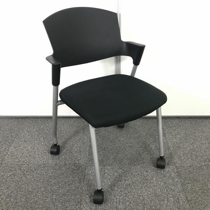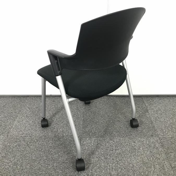 【シンプルスマートなスタッキングチェア!分厚いクッションで長時間でも快適な座り心地!】■コクヨ製 プロッティ 肘付 ミーテイングチェア スタッキングチェア ■固定肘 ■ブラック ■背面ヌードタイプ ■キャスター付- 岐阜店