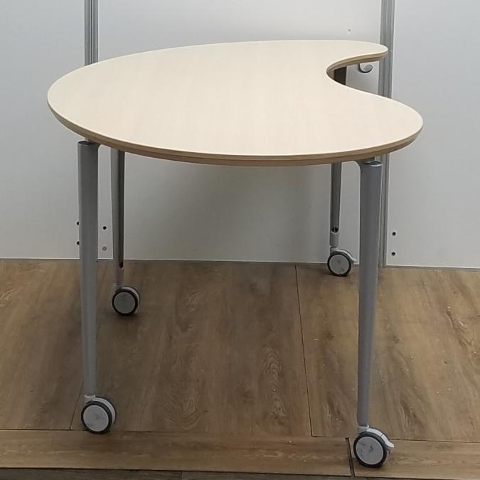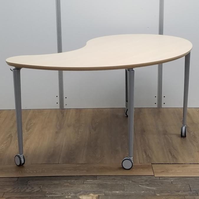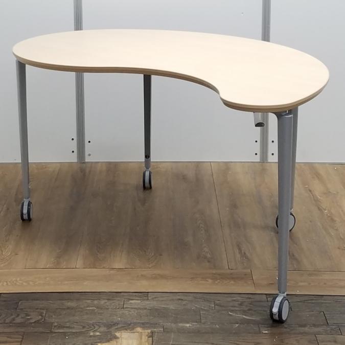 【商品入替のため、残り2台限り】【レア・23年製】コクヨ製 フィットミーシリーズ 木目ナチュラル※ライトナチュラル キャスター付 カバンフック 珍しい勾玉形テーブル!キャスター付でレイアウトも楽々! 勾玉形テーブル- 京都東寺店