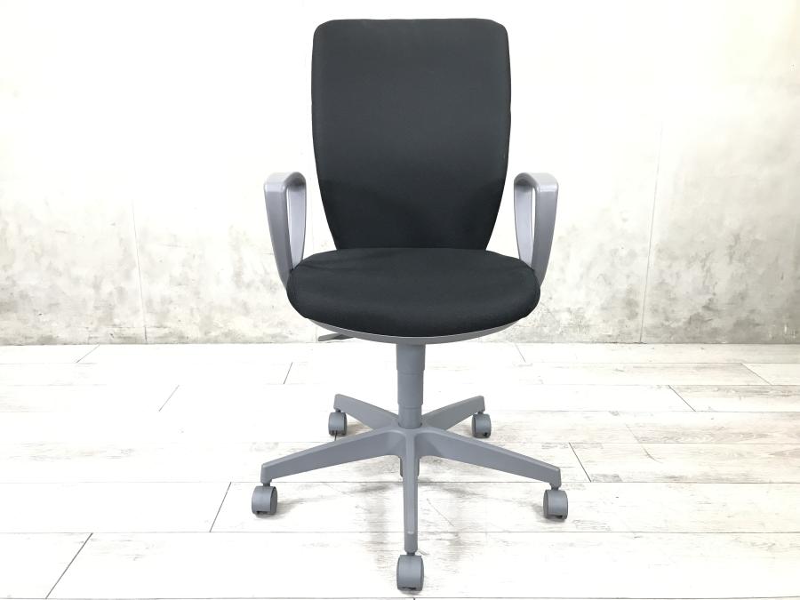 【コスパの良いローコストチェア!シンプルで使いやすい!】■コクヨ(KOKUYO)製 チェロチェア 肘付ハイバック ■ブラック×グレーシェル ■固定肘