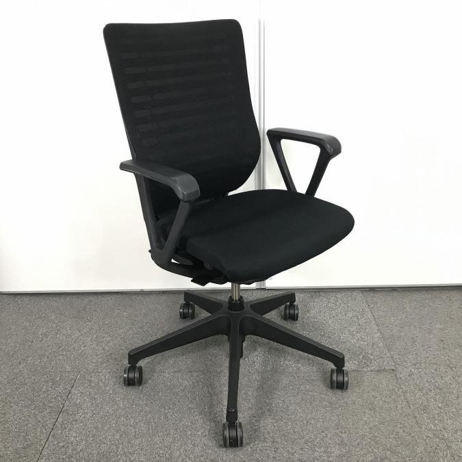 【定価10万円】【操作レスな体重感応メカを搭載!!体格にマッチするエピオスチェア!】■イトーキ(ITOKI)製 エピオスチェア 肘付ハイバック 背面メッシュ ■固定肘 ■ブラック- 仙台店