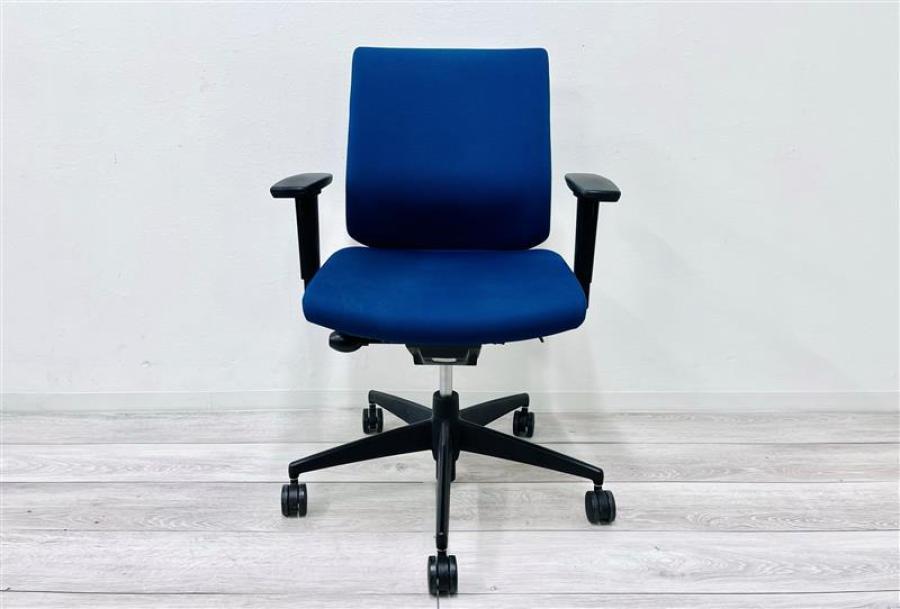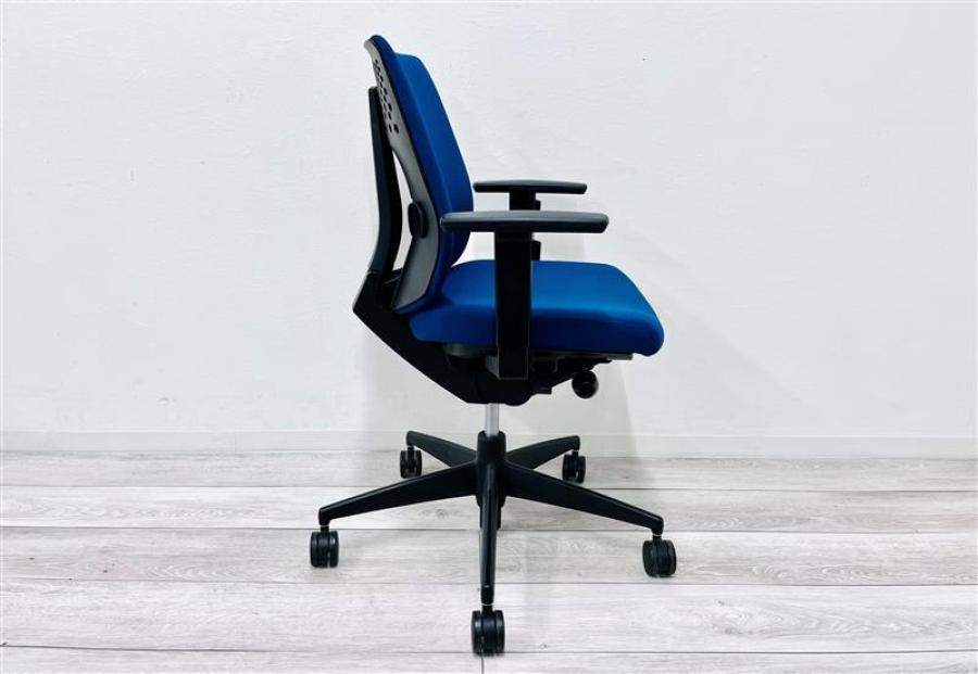 ■コクヨ(KOKUYO)製 ■ウィザード2(wizard2)チェア ■プルシアンブルー×ホワイトシェル ×ブラック脚 ■肘付ローバック ■固定肘・ランバーサポート付き 【弊社使用欄:A01048229 K】【ID】