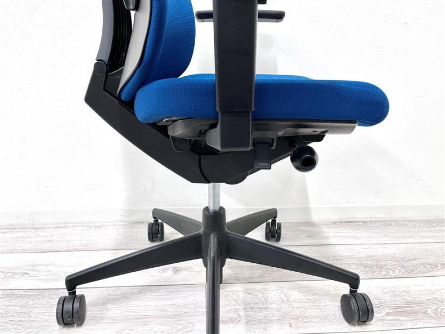 ■コクヨ(KOKUYO)製 ■ウィザード2(wizard2)チェア ■プルシアンブルー×ホワイトシェル ×ブラック脚 ■肘付ローバック ■固定肘・ランバーサポート付き 【弊社使用欄:A01048229】【ID】