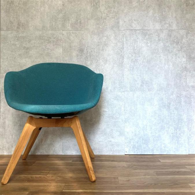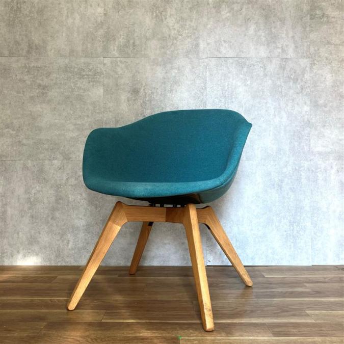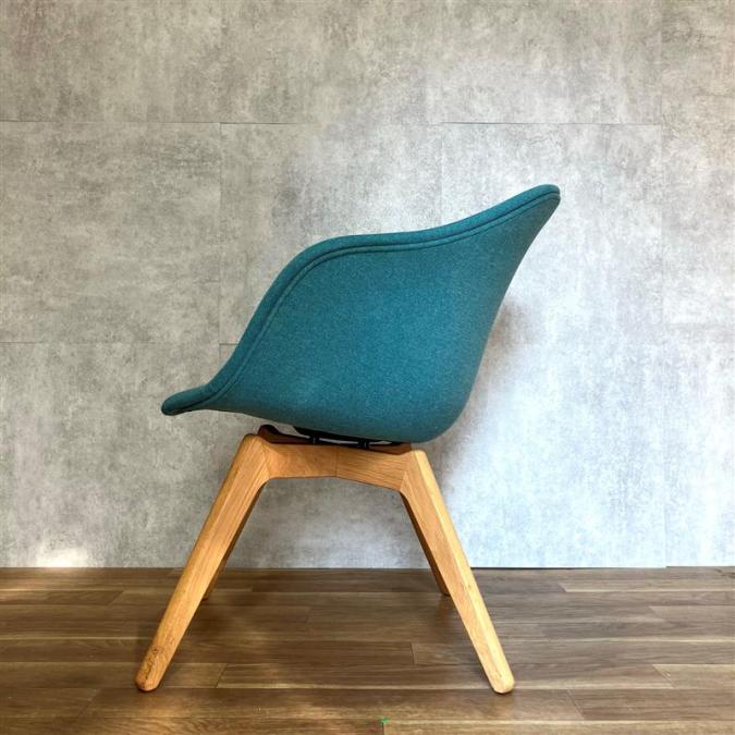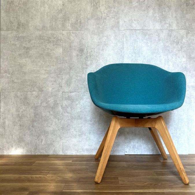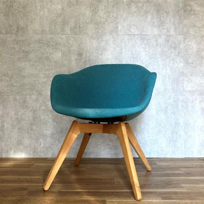 木製の脚で生地が布ブルーとオシャレなデザインチェア!
