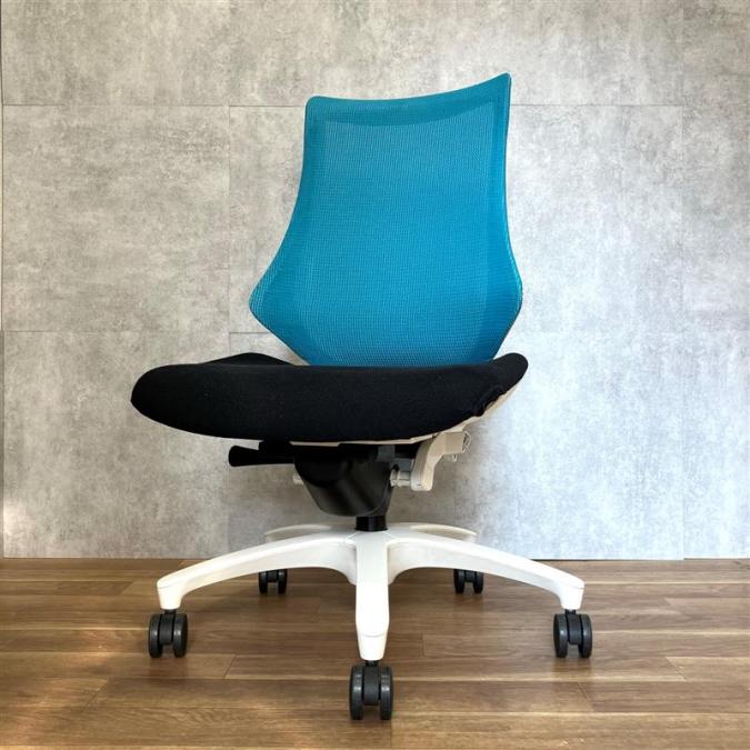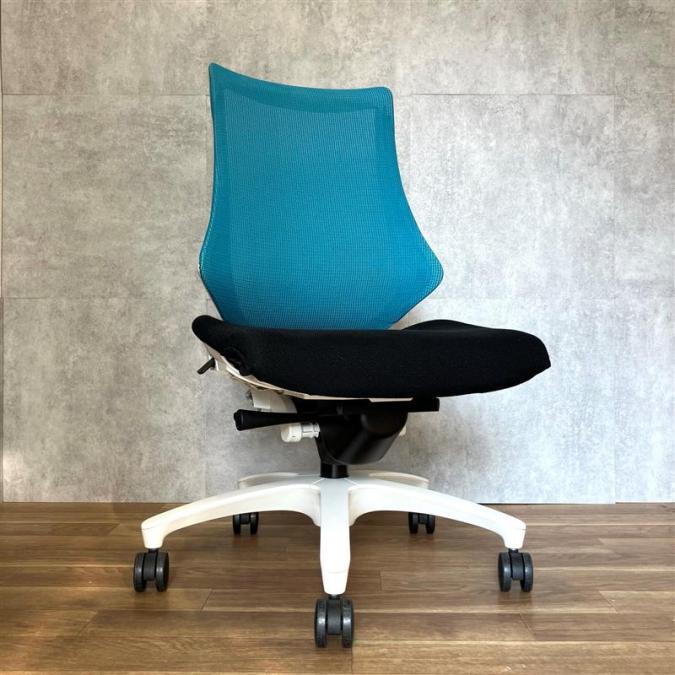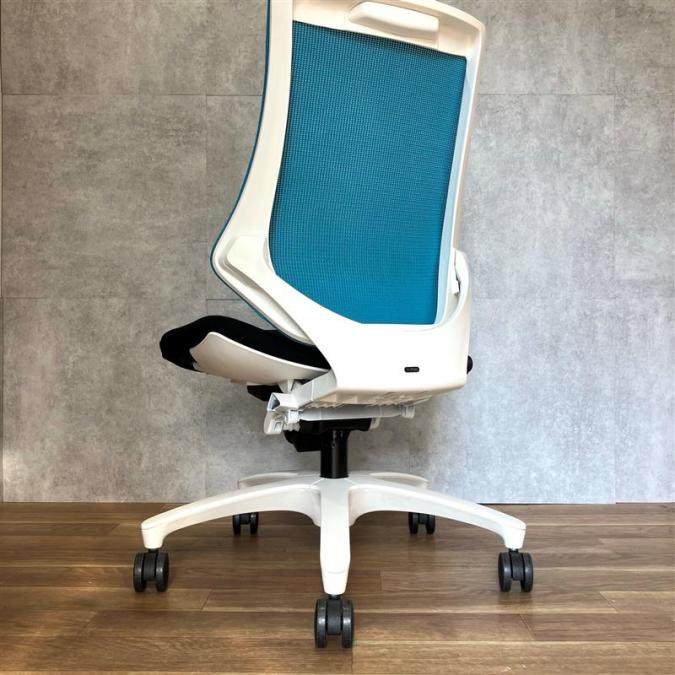 スタイリッシュで座り心地も抜群!フィット感の良い高機能チェア入荷! ■イトーキ/エフチェア(f)/ストロングブルー×ホワイトフレーム 肘無ハイバック ■メッシュ背面