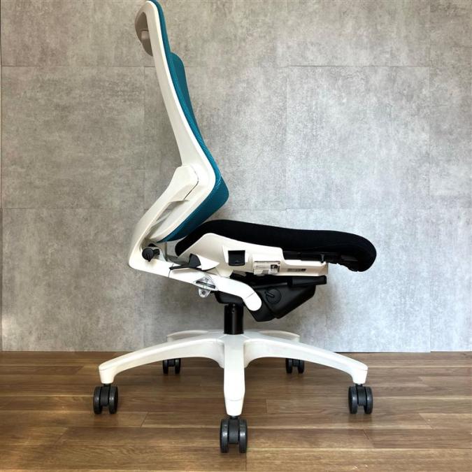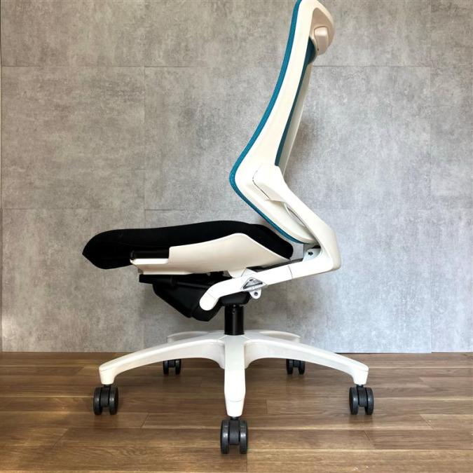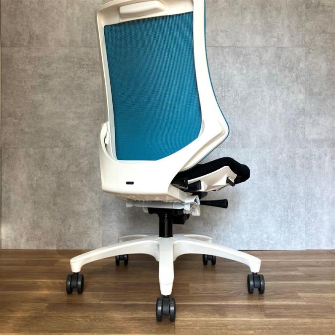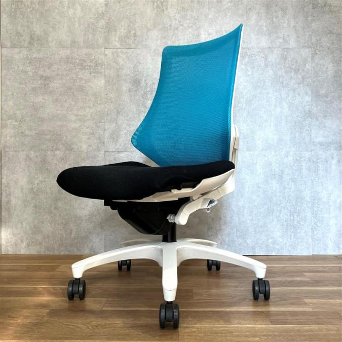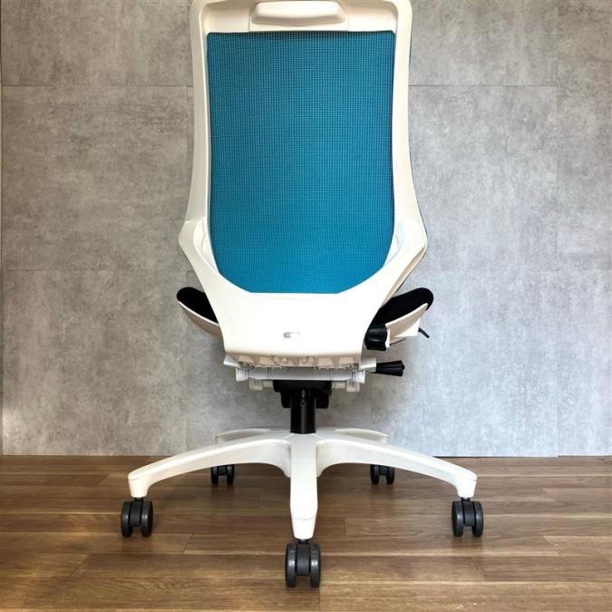 【高機能で座り心地も抜群!姿勢の変化にフレキシブルに対応】■イトーキ(ITOKI)製 エフチェア ハイバック 肘無し ■可動肘 背面メッシュ ■ハンガー付き ■ストロングブルー × ホワイトフレーム