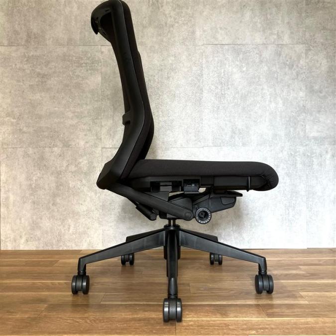 また、個人的にオススメなのは『フルアジャスタブル肘』というアーム部分が斜め前に伸びていくタイプの肘置きを搭載したモデルです。高さを上げれば上げるほどパッドが前方に迫り出していくので、デスクワークの際にちょうど肘を置きたい場所に肘置きがきます。これがとても快適なので、ぜひ一度お試しいただきたいです!*エルフィチェアの肘パーツはフルアジャスタブル肘の他に、固定肘、アジャスタブル肘などがあります。