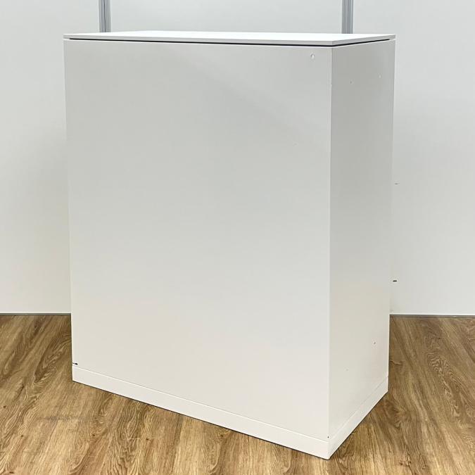 【オフィスの書類をスッキリ整理! 扉の無いタイプなので資料探しがラクラク!】■オカムラ(okamura)製 レクトライン(Rectline)シリーズ オープン書庫 ローキャビネット ■色:ホワイト ※扉外し商品のため外し跡がございます。
