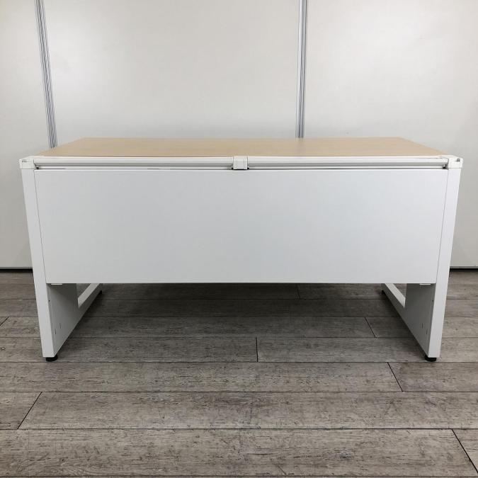 【ワークスペース広々!足元ゆったりの幅1400㎜タイプ!】■コクヨ(KOKUYO)製 isシリーズ(アイエス) 平机 幅1400㎜ 引き出し無し ■天板:木目ナチュラル 本体:ホワイト オフィスバスターズ東大阪店