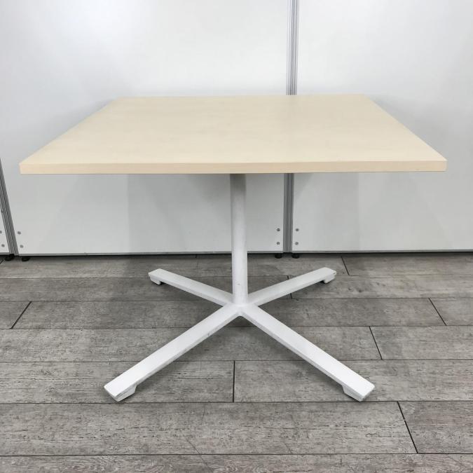【ナチュラル天板のカフェ風テーブル!リフレッシュスペースなどに!】■コクヨ(KOKUYO)製 角テーブル ミーティングテーブル W900×D900×H720mm ■木目ナチュラル天板×ホワイト脚- 春日部・越谷店