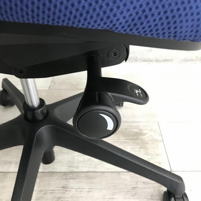 - 座面右下のダイヤル操作で、リクライニングの強弱調整が行えます。これまでのダイヤル式よりも、少ない回転数で、最弱?最強の調整が可能です。