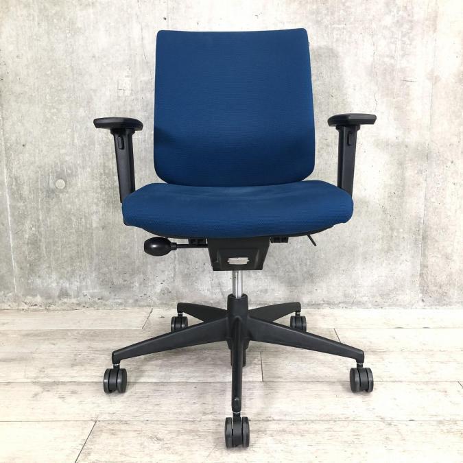 コクヨ ウィザード2 ローバック プルシアンブルー×ブラックフレーム 固定肘付き 使い心地のよい定番シリーズ