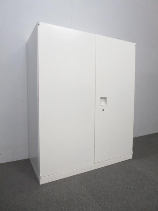 【オフィスの書類をスッキリ整理!取っ手がどの方向からでも開くマルチハンドルが人気!】■オカムラ(okamura)製 レクトラインシリーズ ローキャビネット 両開き書庫 H1250㎜ ■ホワイト ■シリンダー錠