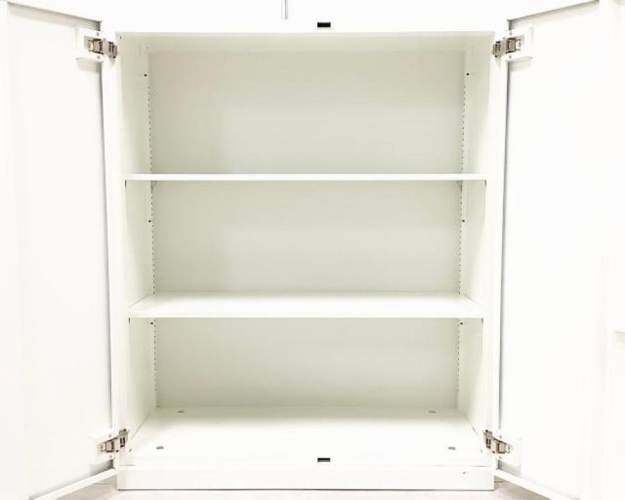 人気のホワイト色、観音開き扉タイプの書庫です。