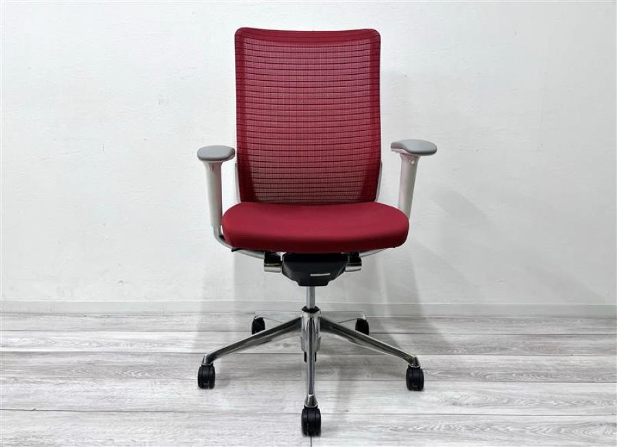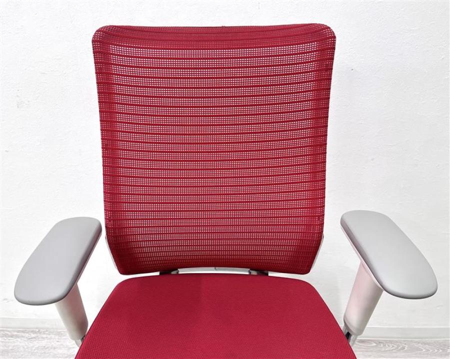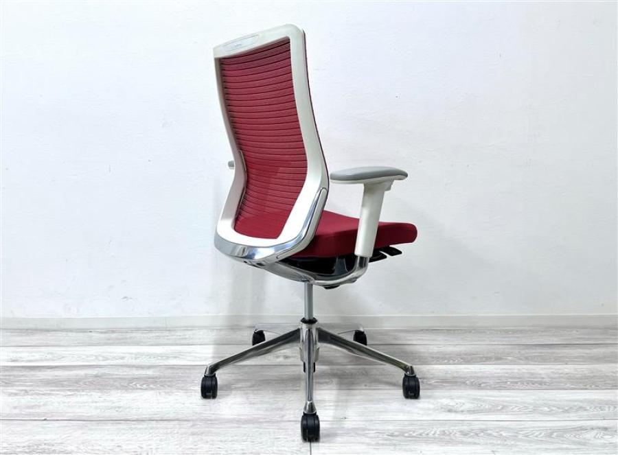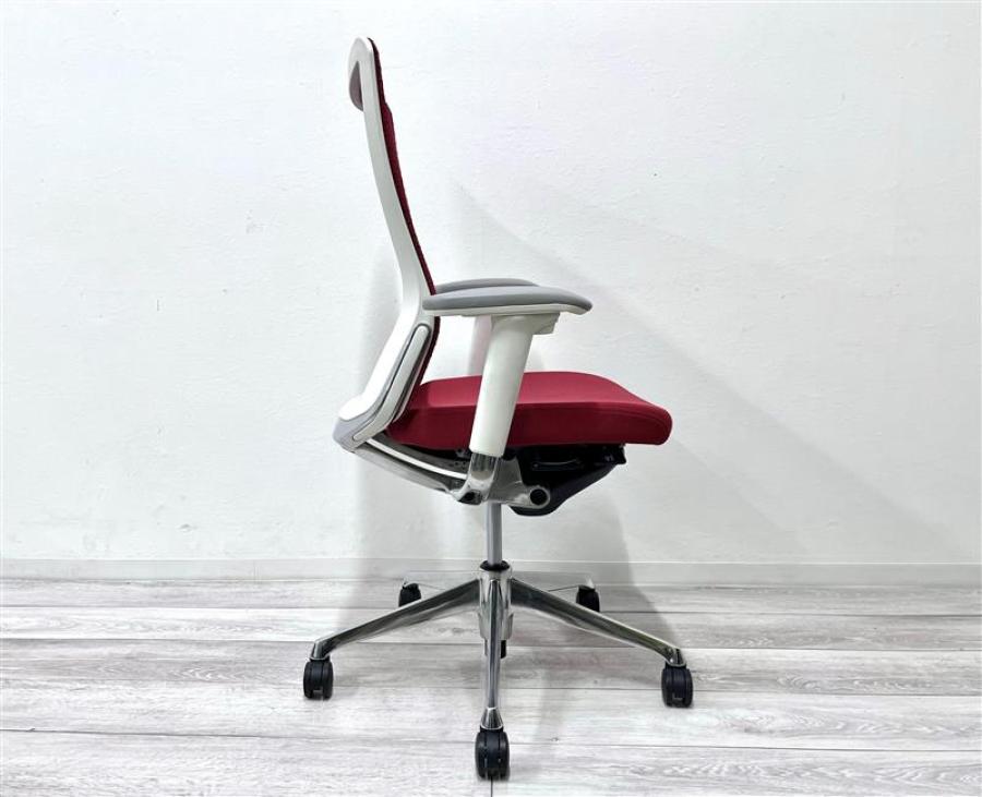 【定価19万円】【シンプルかつ高級感のあるデザイン】■オカムラ コーラル ■肘付ハイバック ■背座レッド/ホワイトフレーム ■可動肘サーキュラーバリューCO2削減量の算出について