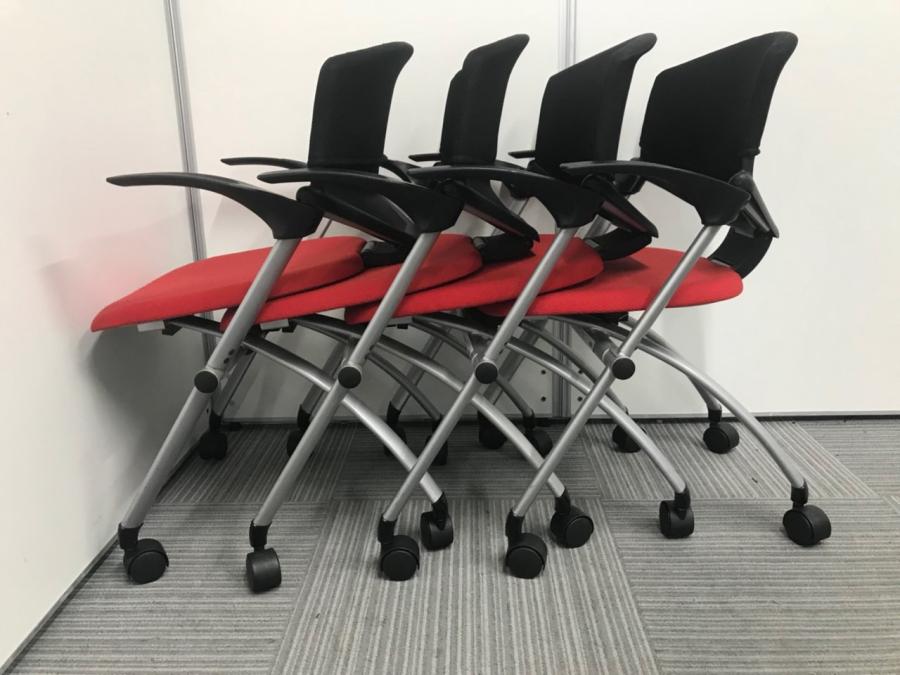 【珍しい肘付き仕様!】会議室や打ち合わせ、来客用に如何でしょうか⁉コクヨ/コルサ/肘付/レッド- 春日部・越谷店