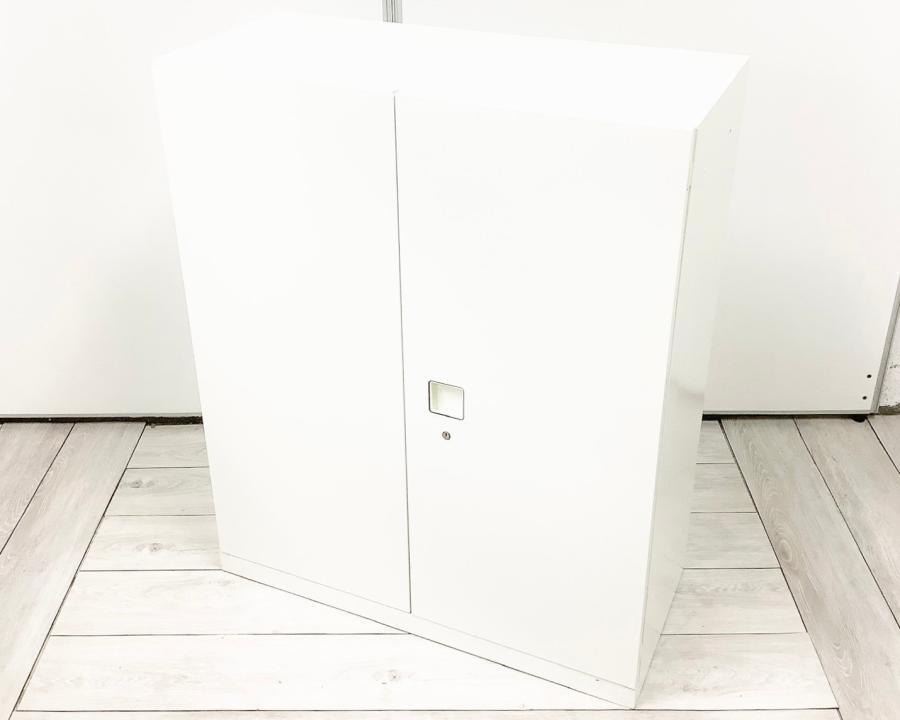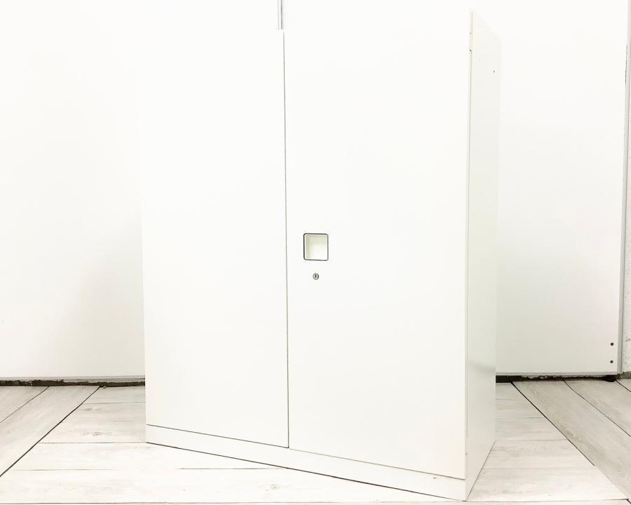 【オフィスの書類をスッキリ整理!取っ手がどの方向からでも開くマルチハンドルが人気!】■オカムラ(okamura)製 レクトラインシリーズ ローキャビネット 両開き書庫 H1250㎜ ■ホワイト ■シリンダー錠
