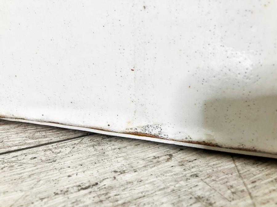 - あり黄ばみ・変色が広い範囲にうっすらある、または濃い黄ばみ・変色が一部ある。(例、天板、幕板、棚板、サイド部分、脚部等にある。)